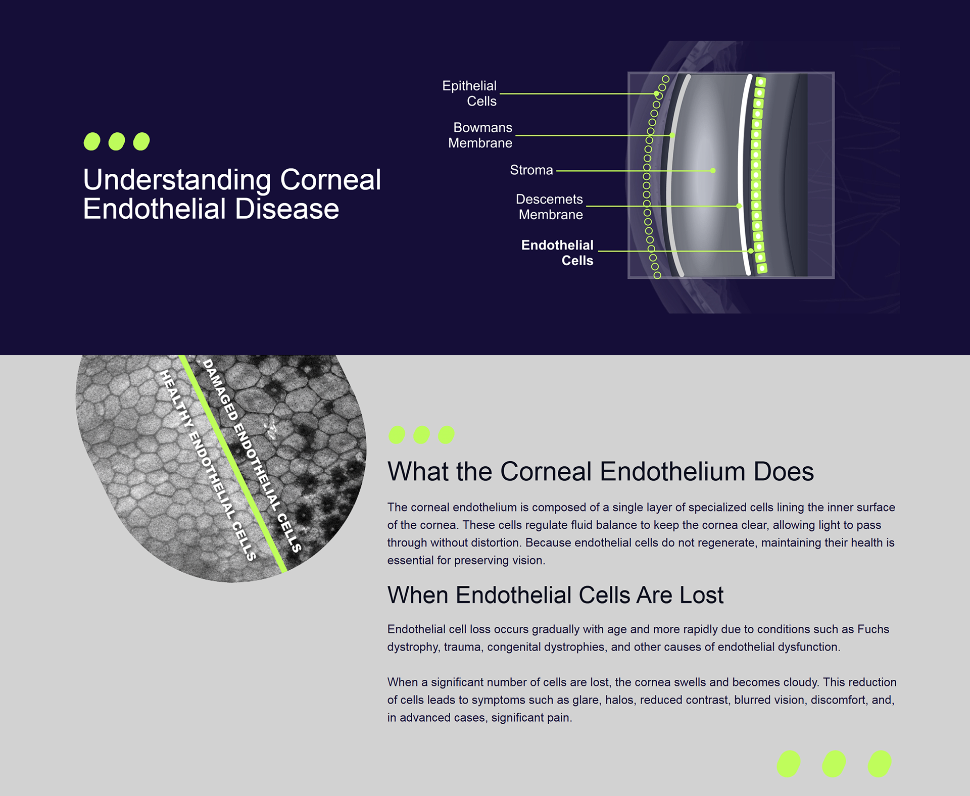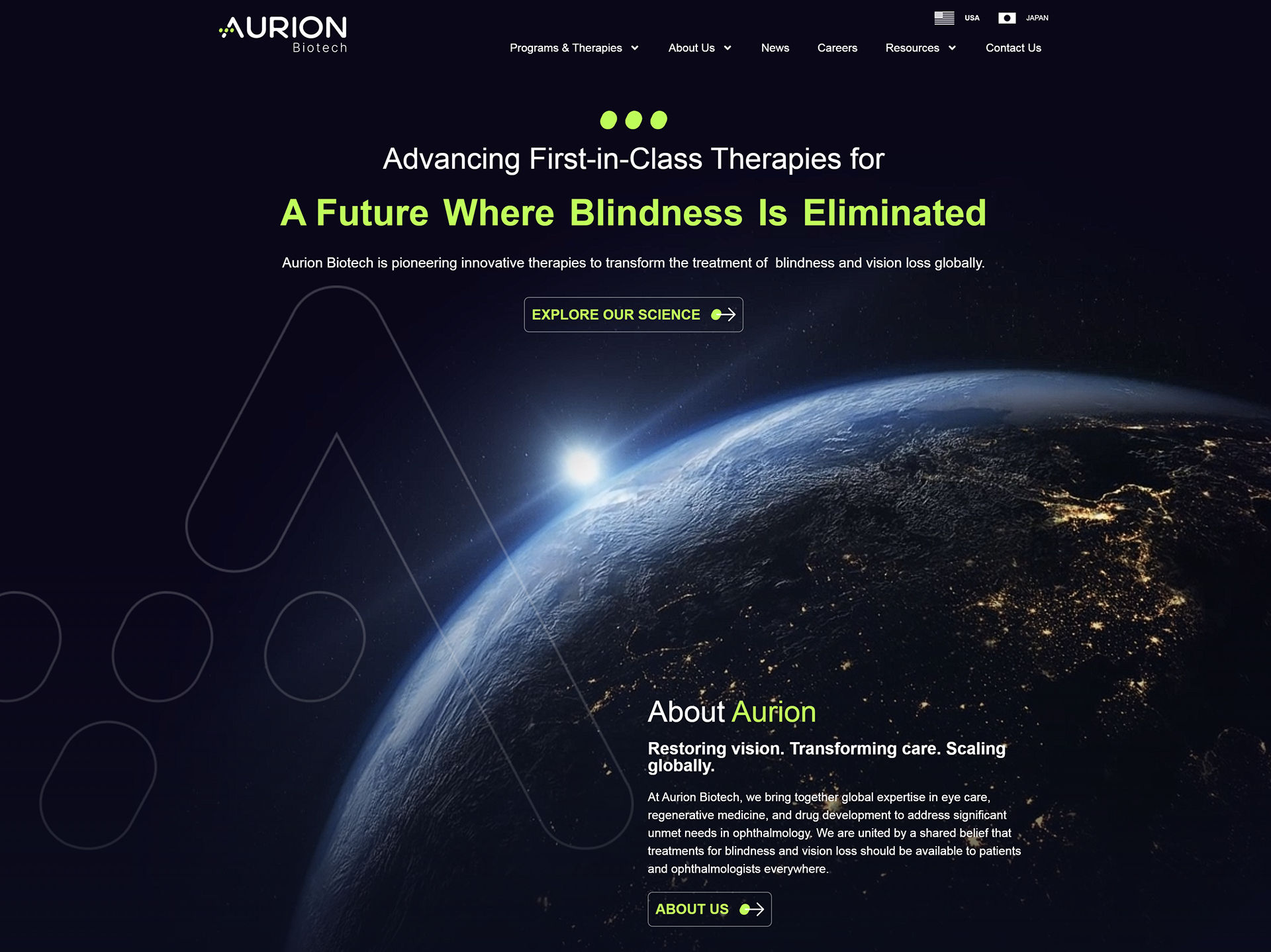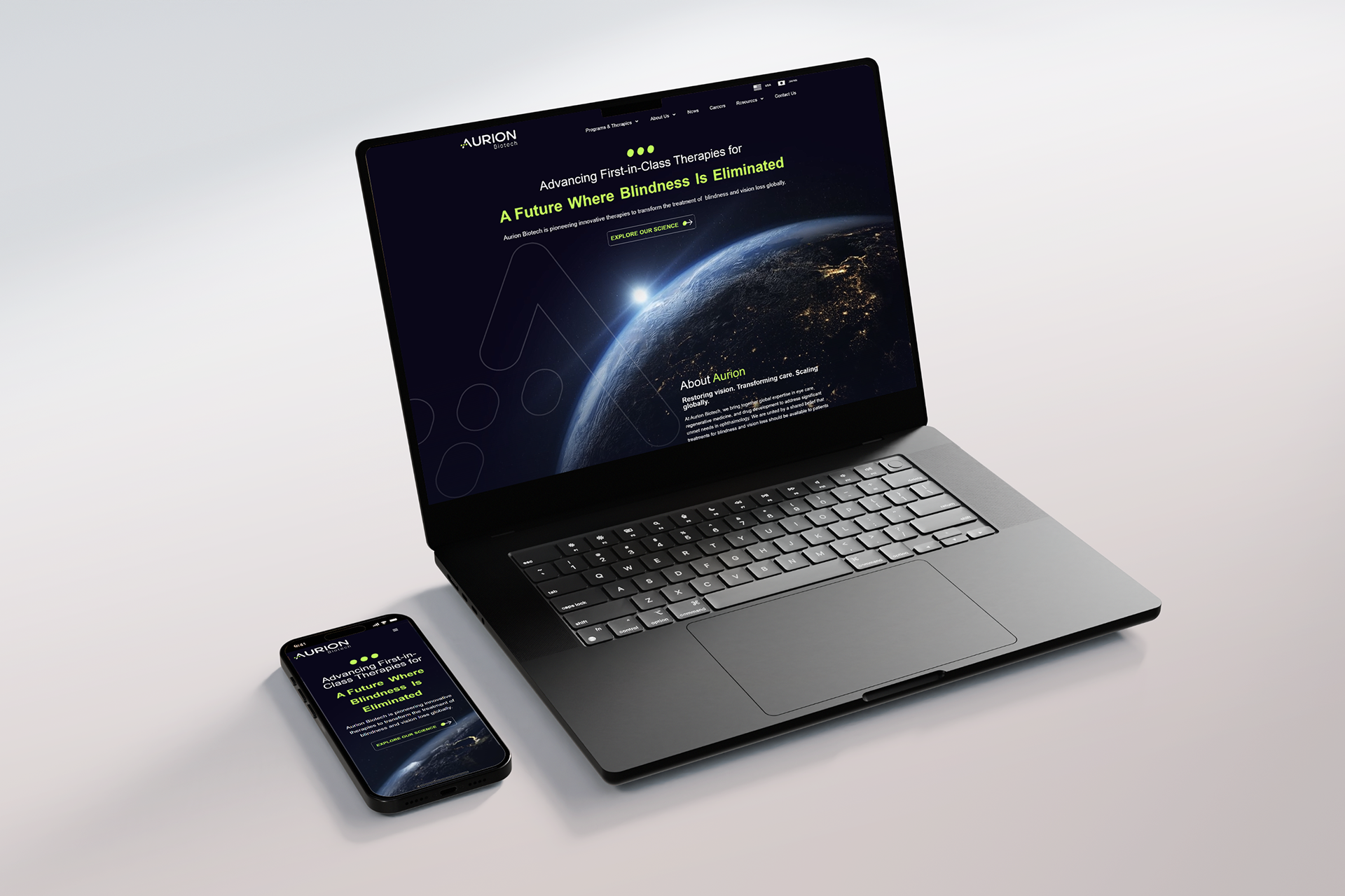 Aurion Biotech is pioneering a regenerative cell therapy designed to restore vision for patients with corneal endothelial disease. As part of the rebrand and website launch, I led the brand design and creative direction, developing a cohesive visual system that communicates both scientific innovation and optimism for the future of vision care. The website features cinematic storytelling, including a hero video of Earth from space at dawn to symbolize Aurion’s ambition to eliminate blindness worldwide. Additional motion graphics and anatomical illustrations were created to help patients understand the science behind the therapy, while a consistent set of graphic elements reinforces the new brand identity throughout the digital experience.