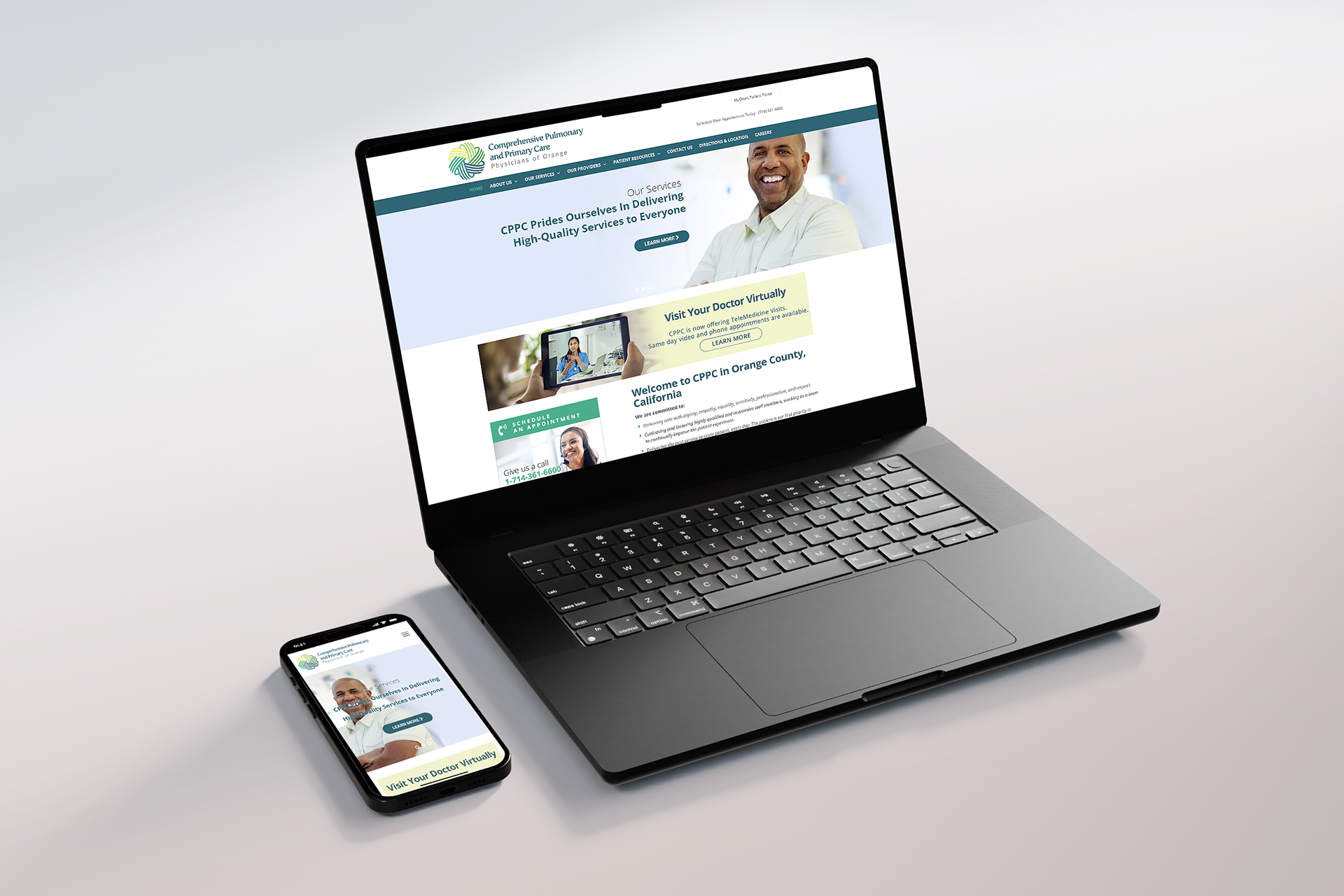 The rebranding project for Comprehensive Pulmonary and Primary Care (CPPC) involved a thoughtful redesign of the group's visual identity to reflect their mission of delivering compassionate, high-quality care. The new logo, carefully crafted, features an intricate flower design symbolizing the balance of strength and delicacy—holding the petals tightly while allowing the blossom to flourish. The rebrand also included signage, stationery, and a modernized website, all aligned to express the group's commitment to patient well-being and convenience. CPPC is based in Southern California and serves the Greater Los Angeles area.