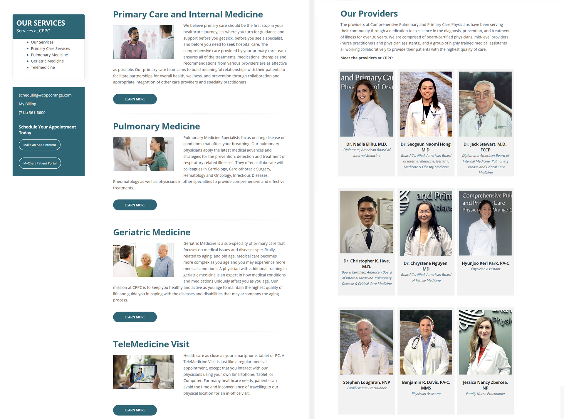 The website design for Comprehensive Pulmonary and Primary Care is informational, user-friendly, and patient-centered. With a fresh, modern look and feel, it highlights services, patient resources, and physician expertise, ensuring seamless navigation and easy access to care via MyChart Patient Portal.