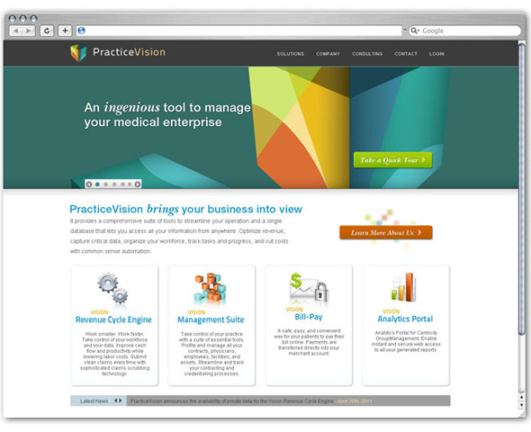 PracticeVision is a comprehensive suite of healthcare management tools designed by a well-respected Practice and Revenue Cycle Management company with over 25 years of experience in the Healthcare and IT industries. The objective of the project was to create a brand identity that communicates technological strength as well as confidence.