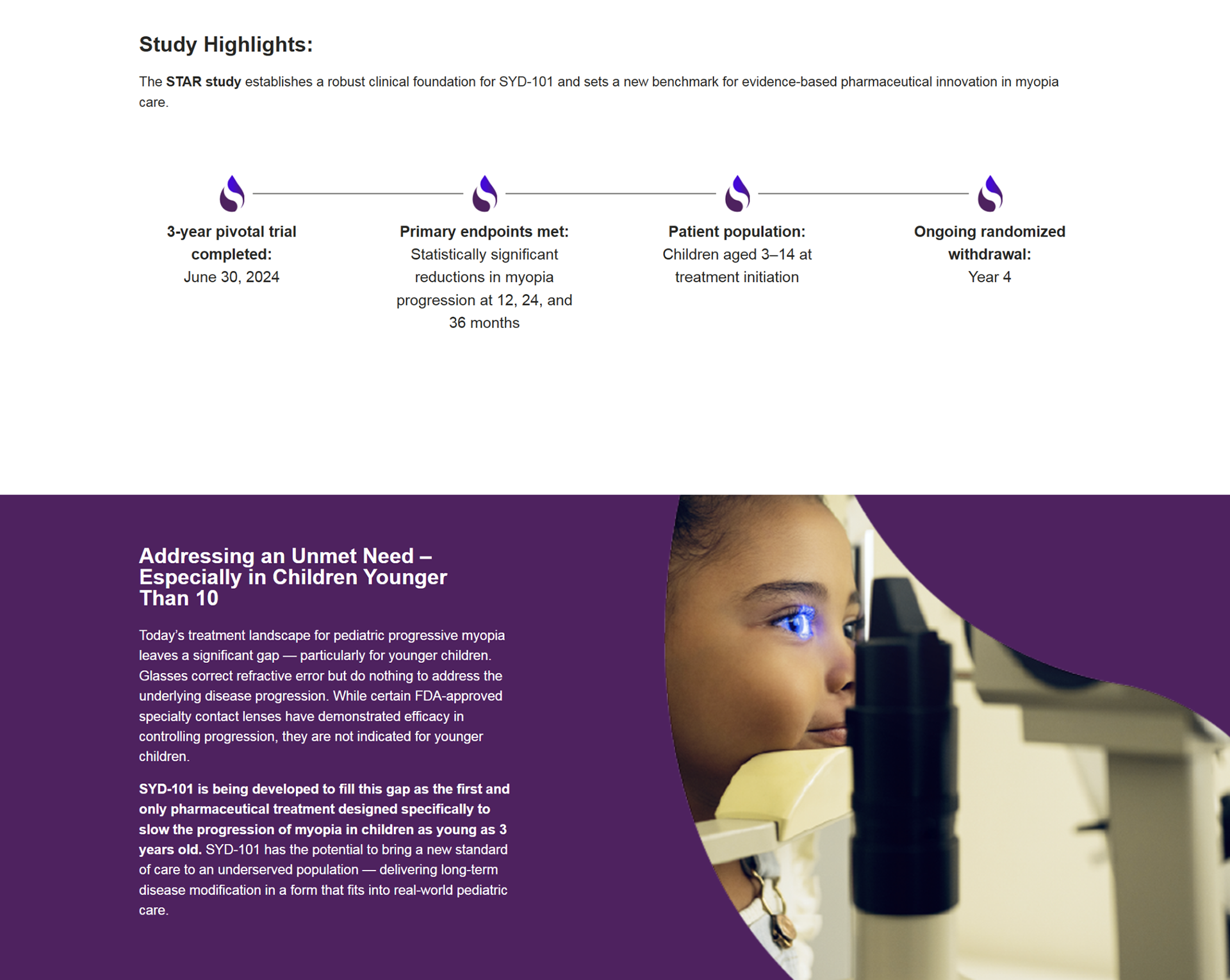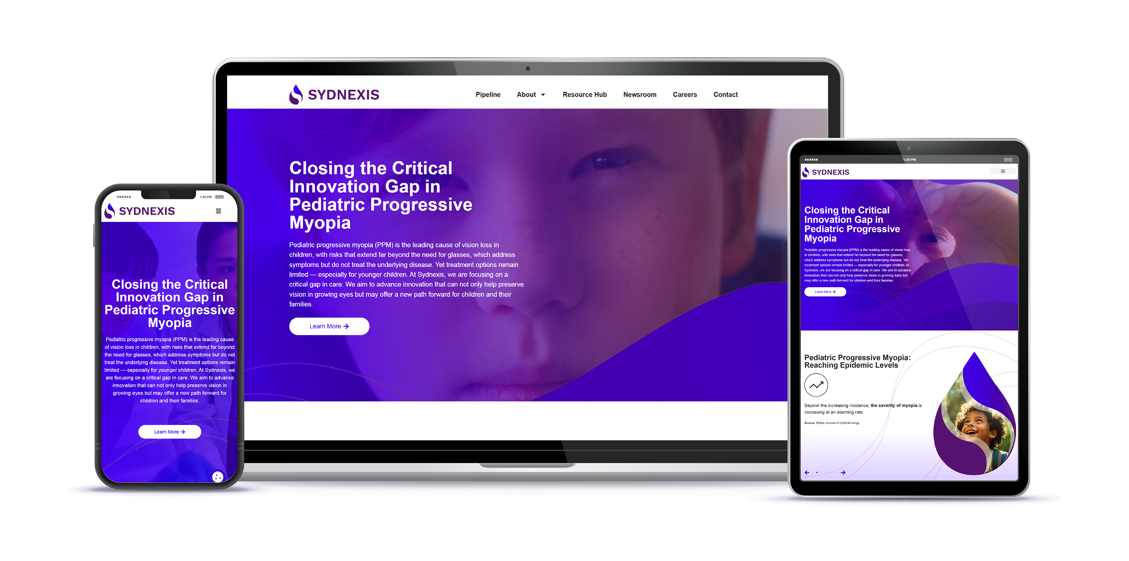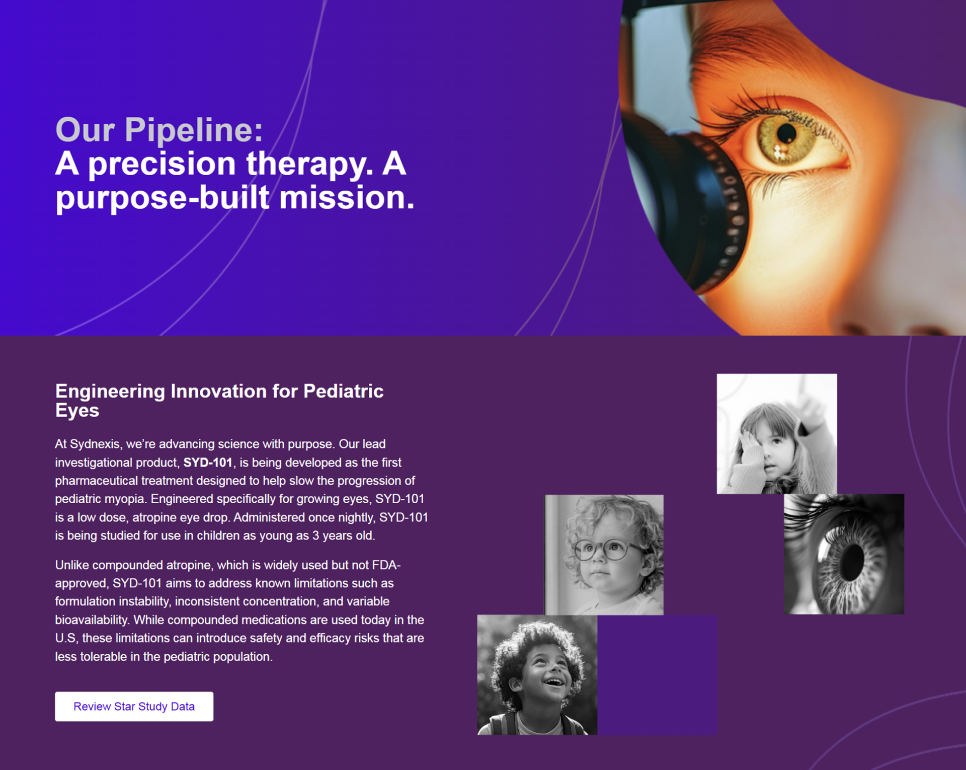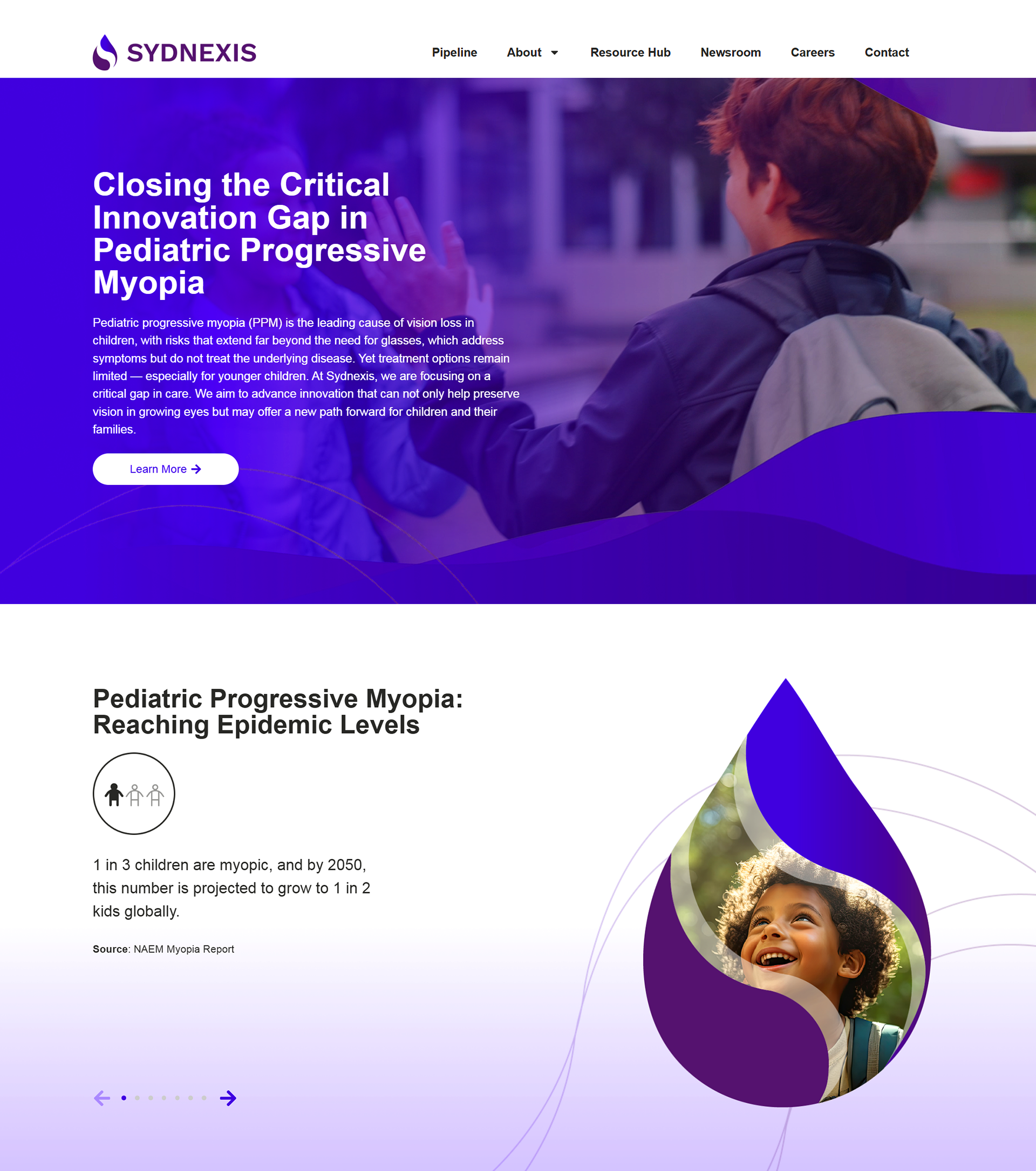 Sydnexis is focused on advancing a purpose-built treatment for pediatric progressive myopia, with the goal of protecting children’s vision through early intervention. I supported the rebranding effort and art direction, helping translate a highly clinical story into a modern, approachable brand experience rooted in science, clarity, and optimism.